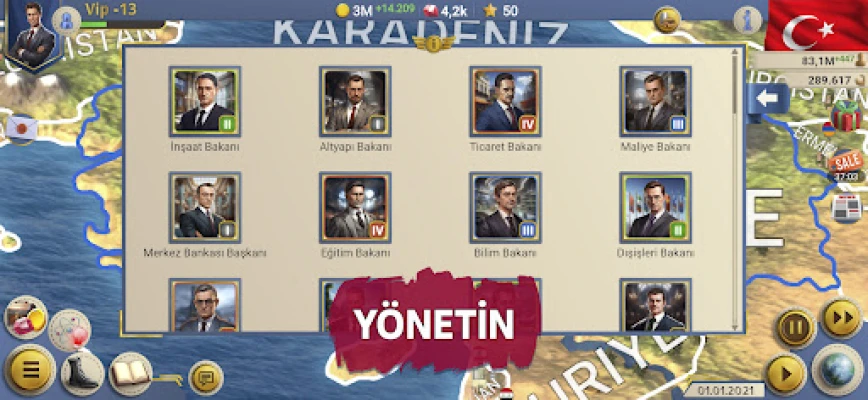 Uluslararası arenada etkin bir rol oynayarak diplomasi ve güç dengelerini lehinize çevirin. Güçlü bir ordu ve donanma kurun, askeri teknolojilerde ilerleyin ve stratejik operasyonlarla ulusal güvenliğinizi sağlayın. Nükleer silah araştırmalarından düşmanlarınıza karşı stratejik hamlelere kadar her detay elinizde. Diğer uluslarla dostluklar kurun, uluslararası paktlar imzalayın ve Birleşmiş Milletler gibi kuruluşlarda küresel politikaları yönlendirin. Ancak liderlik sadece başarılarla değil, aynı zamanda zorluklarla da doludur; terör saldırıları, doğal afetler, pandemiler ve ekonomik krizlerle mücadele etmeye hazır olun. 2. MÇ - Başkan Simülatörü'nde vereceğiniz her karar, devletinizin ve hatta küresel tarihin akışını değiştirebilir.
