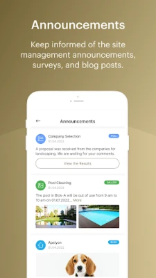 Ortak yaşamın vazgeçilmezi olan iletişim ve etkileşim de Aktif Yaşam Hizmet Yönetimi ile yeni bir boyut kazanır. İhtiyaç duyabileceğiniz acil veya rutin iletişim bilgileri için kapsamlı rehber özelliğinden faydalanabilir, site veya apartmanınızın yönetim kadrosundaki yetkili kişileri pozisyonlarıyla birlikte görüntüleyebilir ve onlarla kolayca iletişime geçebilirsiniz. Toplumsal katılımı teşvik eden anketlere katılarak görüşlerinizi bildirebilir, yönetiminizin paylaştığı ortak alan fotoğraflarına yorum yaparak komşularınızla etkileşim kurabilirsiniz. Aktif Yaşam Hizmet Yönetimi, yaşam alanlarınızda huzur ve düzeni sağlamak için ihtiyaç duyduğunuz tüm araçları bir araya getirir.