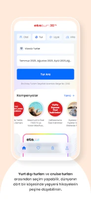 Etstur - Otel, Tur, Uçak uygulaması yenilenen tasarımıyla yayında! Otel, tur ve uçak bileti rezervasyonlarını hızla ve kolayca yap. Zengin filtreleme seçenekleri, fiyat karşılaştırma ve kişiselleştirilmiş deneyimle seyahat planlarını rahatça organize et. Türkiye genelindeki otelleri keşfet.